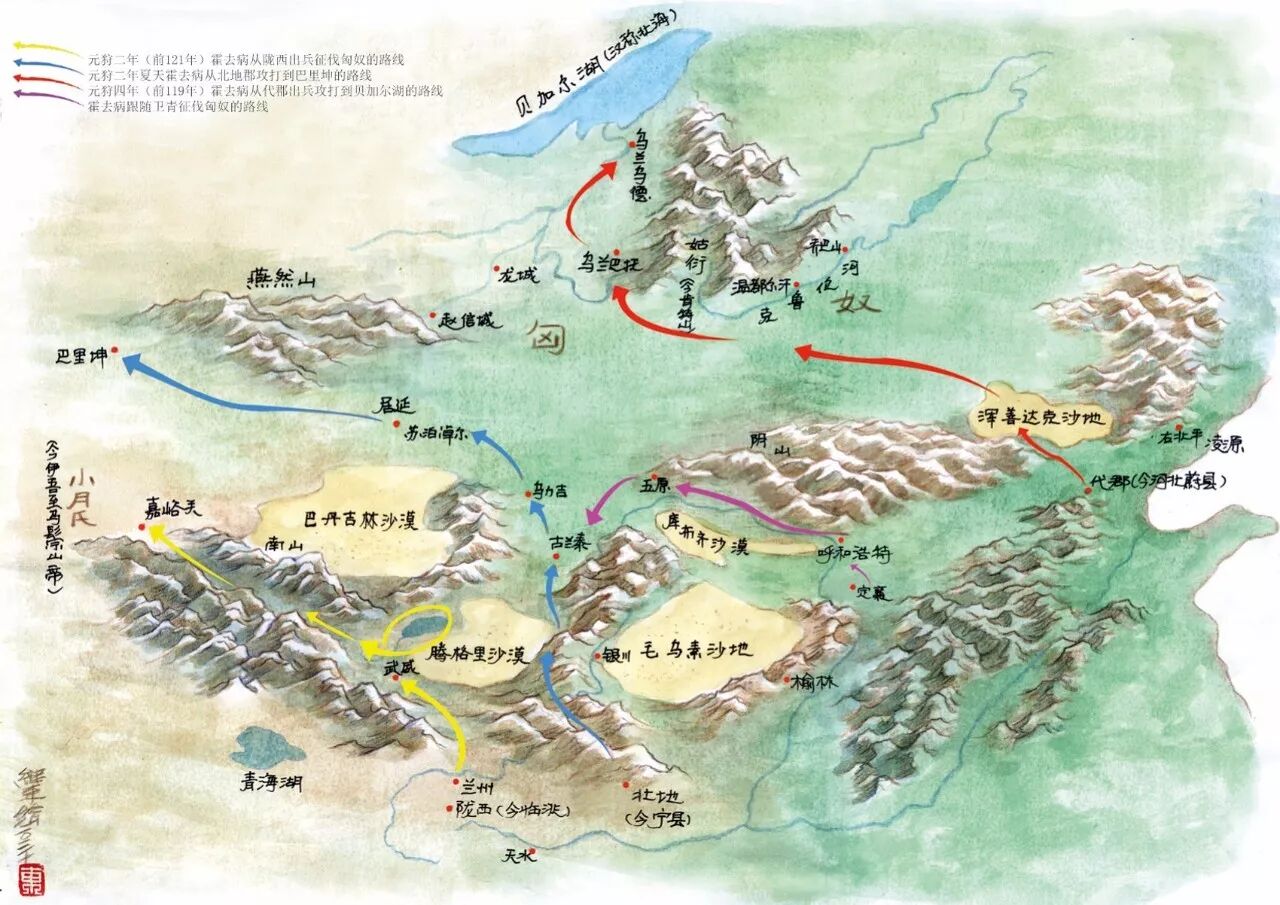 霍去病征伐匈奴的路線圖 《中國國家地理》2011年02期 繪圖/于繼東