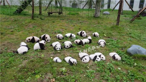 在雅安碧峰峽基地,17只新生熊貓寶寶集合在白熊坪圈舍,排列成三行隊(duì)伍,最后一排的寶寶們由奶爸奶媽抱著,集體向公眾問(wèn)好。截至目前,2017年中國(guó)大熊貓保護(hù)研究中心共繁育大熊貓30胎,成活42仔,大熊貓繁育數(shù)量創(chuàng)歷史新高。