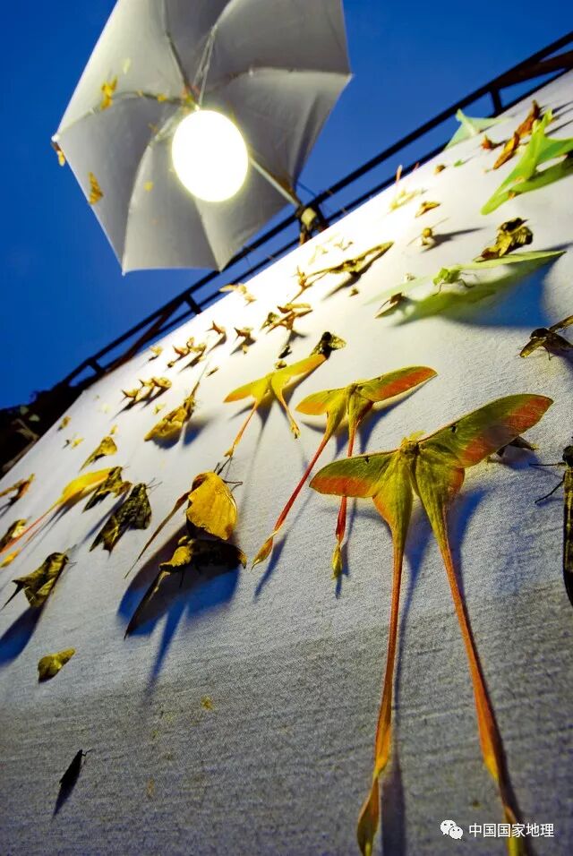 在光源刺激下,許多動植物會產(chǎn)生定向運動。關(guān)于昆蟲趨光現(xiàn)象,中國古代就有“飛蛾撲火”的說法。上圖中,一群彩色長尾蛾聚集在白亮的燈光下。釋放光能的同時,燈光還會釋放熱量,威脅飛蛾的生命安全。