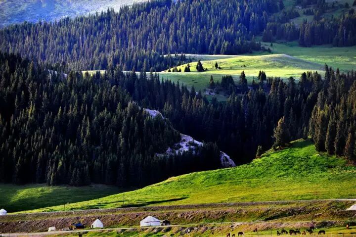 登山果子溝的任一斜坡都可以拍到林帶和山脊漫無邊際的美景。果子溝的高架橋也很震撼,是中國最美的自駕道路之一。