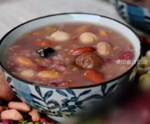 飲食上“小寒”節(jié)氣中有一重要的民俗就是吃“臘八粥”。《燕京歲時記》中記載:“臘八粥者,用黃米、白米、江米、小米、菱角米、栗子、紅豇豆、去皮棗泥等,合水煮熟,外用染紅桃仁、杏仁、瓜子、花生、榛穰、松子及白糖、紅糖、瑣瑣葡萄,以作點染。”
