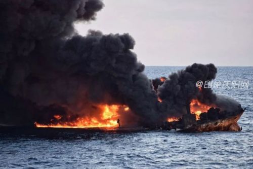 雨,西北風(fēng)7-8級(jí)。“桑吉”輪船體及外泄燃油全面爆燃,緊急劃定避航區(qū)并發(fā)布警告。