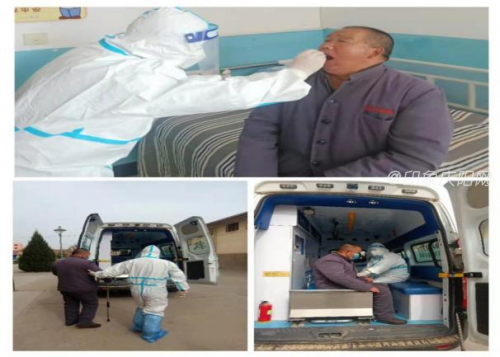 經(jīng)醫(yī)護(hù)人員診斷,該老人為新冠肺炎疑似患者,需轉(zhuǎn)院進(jìn)一步診查,核酸采樣后,將疑似患者轉(zhuǎn)運(yùn)至定點(diǎn)醫(yī)院觀察。
