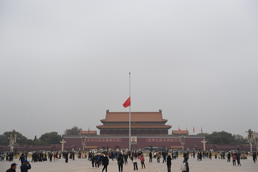 11月2日,為悼念李克強同志,首都天安門下半旗志哀。