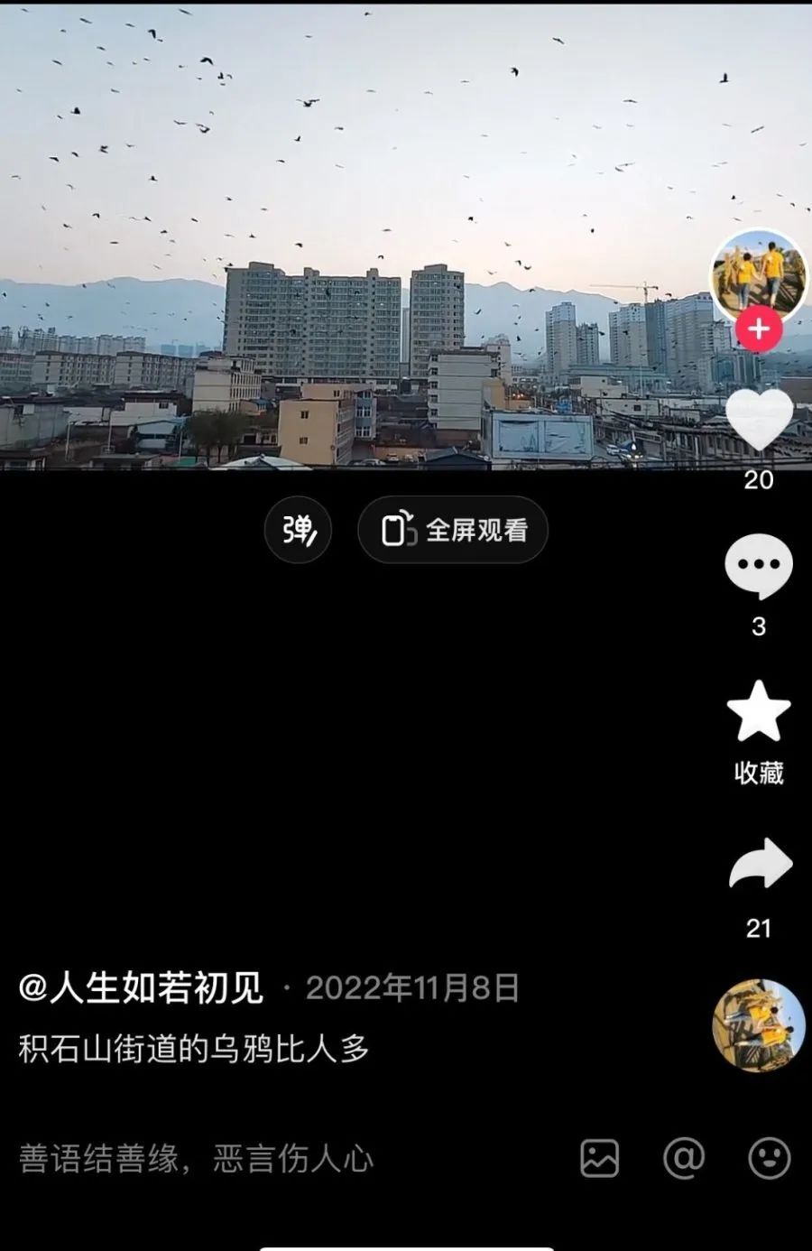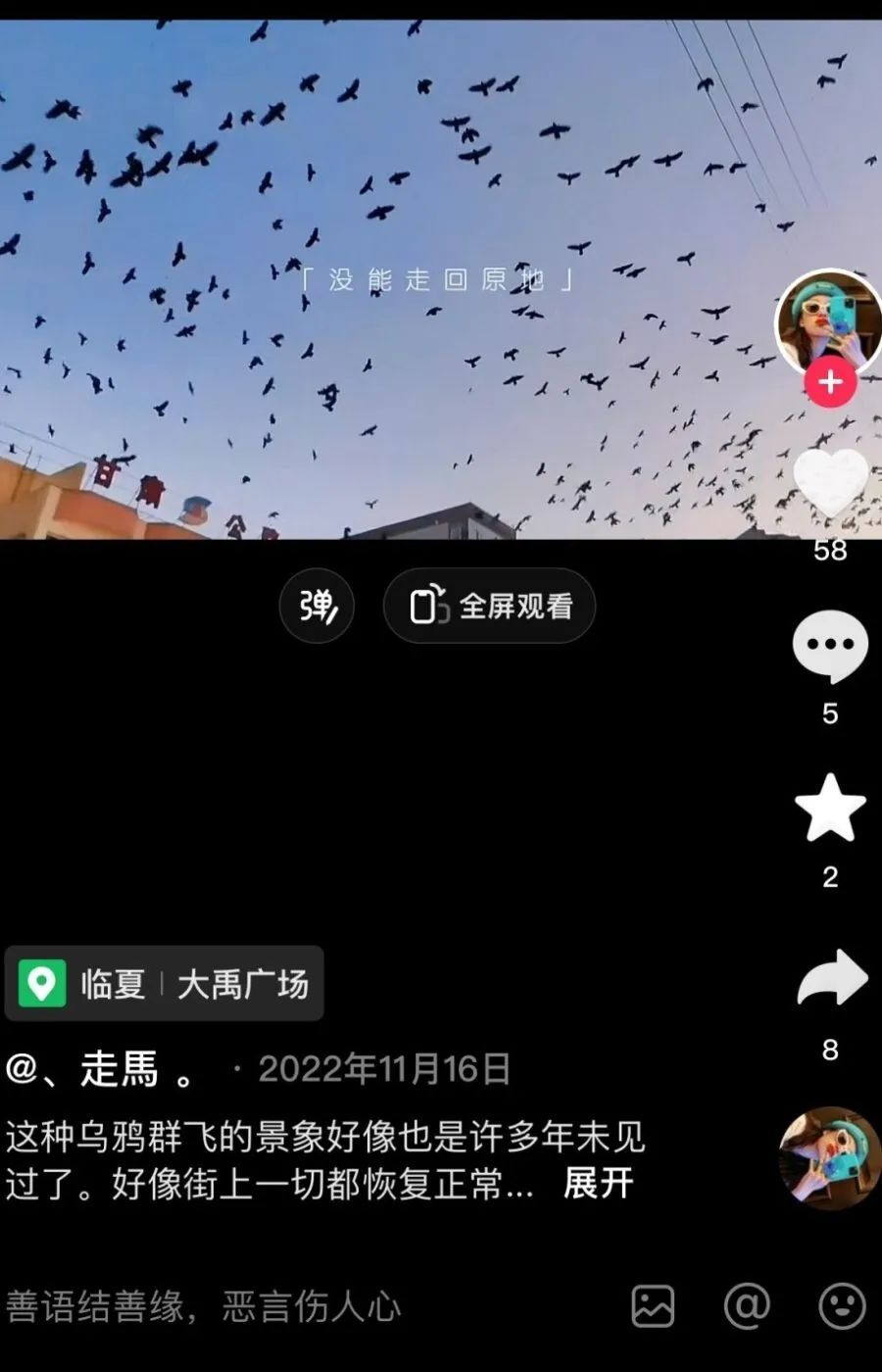 在視頻平臺(tái)搜索關(guān)鍵詞“積石山 烏鴉”,確實(shí)看到有大量往年積石山網(wǎng)友上傳的烏鴉成群盤旋天空的視頻,如下圖所示,這兩條視頻均為網(wǎng)友2022年11月所發(fā)。