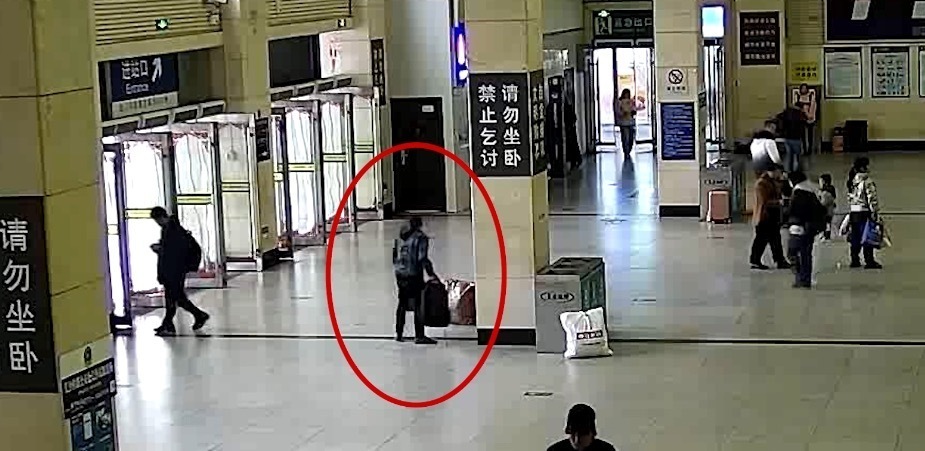 接報(bào)后,民警通過(guò)調(diào)取公共區(qū)域視頻,鎖定了一名黑衣男子。監(jiān)控畫面顯示,事發(fā)當(dāng)時(shí),該男子在售票廳閑逛,趁李某買票時(shí),拿走了柱子旁的行李,隨后離開(kāi)火車站。在翻找了包內(nèi)物品后,男子將包裹扔在了火車站附近的地下通道,換上新鞋后便離開(kāi)了。隨后,民警在地下通道找到了被丟棄的行李和玉壺,繼續(xù)搜索該男子的行蹤。