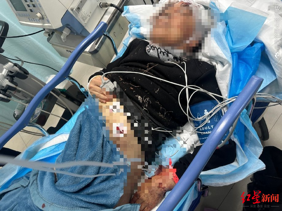 趕到醫(yī)院后,郭先生的兒子才了解到,父親已經(jīng)被送進(jìn)手術(shù)室進(jìn)行治療,“父親全身一共被縫了300多針,為了救治父親,醫(yī)生給他輸了2000cc血。”