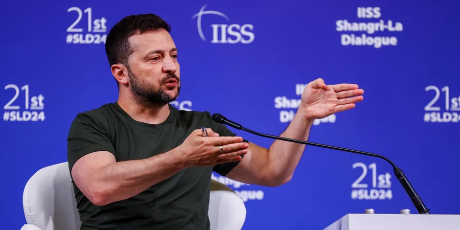 澤連斯基在第21屆香格里拉對(duì)話會(huì)上 圖源:烏克蘭媒體《烏克蘭新聲》報(bào)道配圖