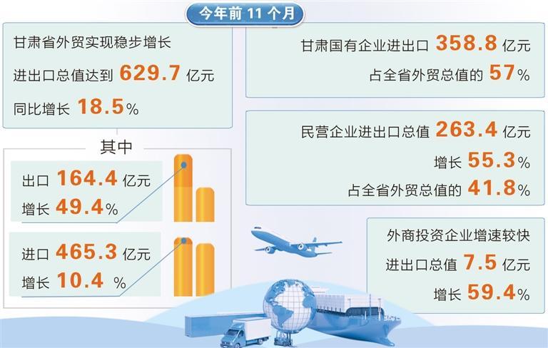 前11個月甘肅外貿(mào)進(jìn)出口總值達(dá)到629.7億元 同比增長18.5%
